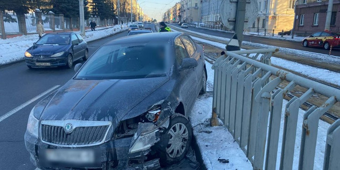 — The 28-year-old driver of a Skoda lost control while changing lanes and hit a road sign as a result, — the traffic police commented on the accident.