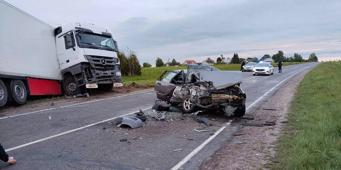On May 29, at around 11:35 pm, the driver of a Mercedes truck was driving along the Ivye – Trokeli – Radun highway. An accident occurred at the 58th kilometer of the road (Voronovsky District). “When exiting a curve, the driver drove onto the right shoulder in the direction of travel, as a result of which he lost control of the car, — the State Traffic Inspectorate reported. — The car ended up in the oncoming lane, where it collided head-on with an Audi.”