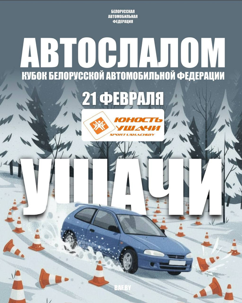 In the same Ushachi district there will also be a competition in automobile slalom – “BAF Cup”. In simple terms, it is figure driving on a specially equipped area marked with traffic cones for a time. The competition regulations are available at the link.