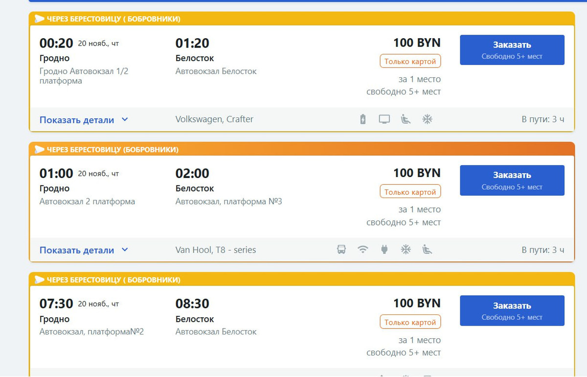 Routes have also been restructured for trips from Grodno to Warsaw and Bialystok. 90% of them go via Berestovitsa. Tickets have become cheaper: to Bialystok – 100 rubles, to Warsaw – 130.