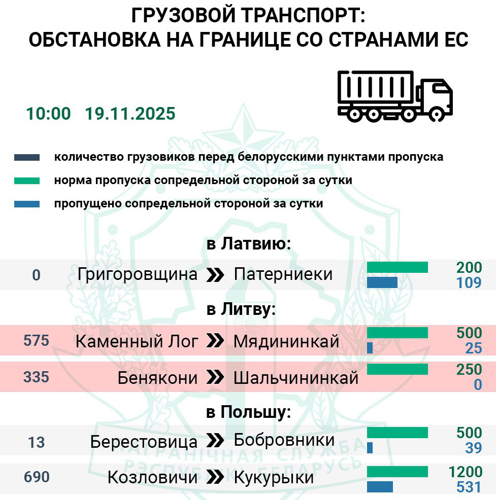 As of today, two checkpoints on the border with Lithuania are open. But there are no long queues there either. As of Thursday evening, November 20, the longest queue is currently at the Kamenny Log checkpoint – 18 cars. You can monitor the situation at other checkpoints on the Beltamozhservice website: Benyakoni – 8 passenger cars, Berestovitsa and Grigorovshchina – one car each, and no one at the other checkpoints.